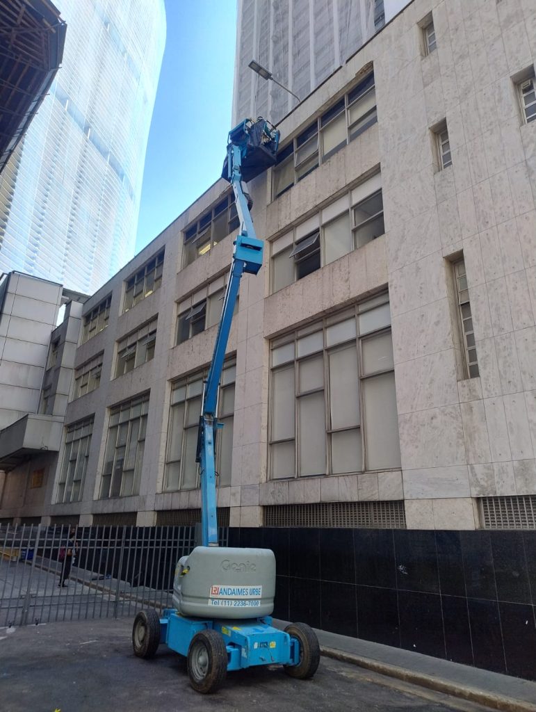 Recentemente, fornecemos uma PEMT (Plataforma Elevatória Móvel de Trabalho) modelo Genie Z-45/25 para a obra de recuperação de fachada da unidade Bradesco, realizada pela construtora Serpol Construções, no centro de São Paulo.