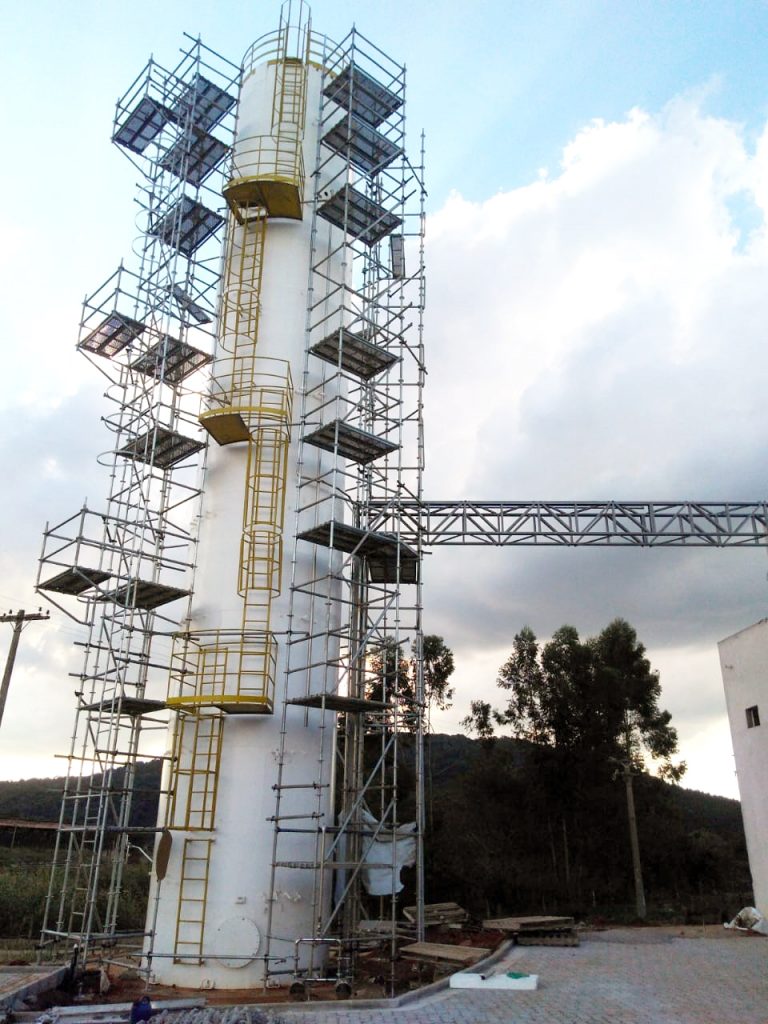 Em uma fazenda de laticínios numa grande área industrial que abrange tanques de armazenamento, para execução do serviço de manutenção, exigiam-se andaimes que permitem contornar locais complexos com montagem segura, dentro do menor prazo possível e com a menor quantidade de materiais.