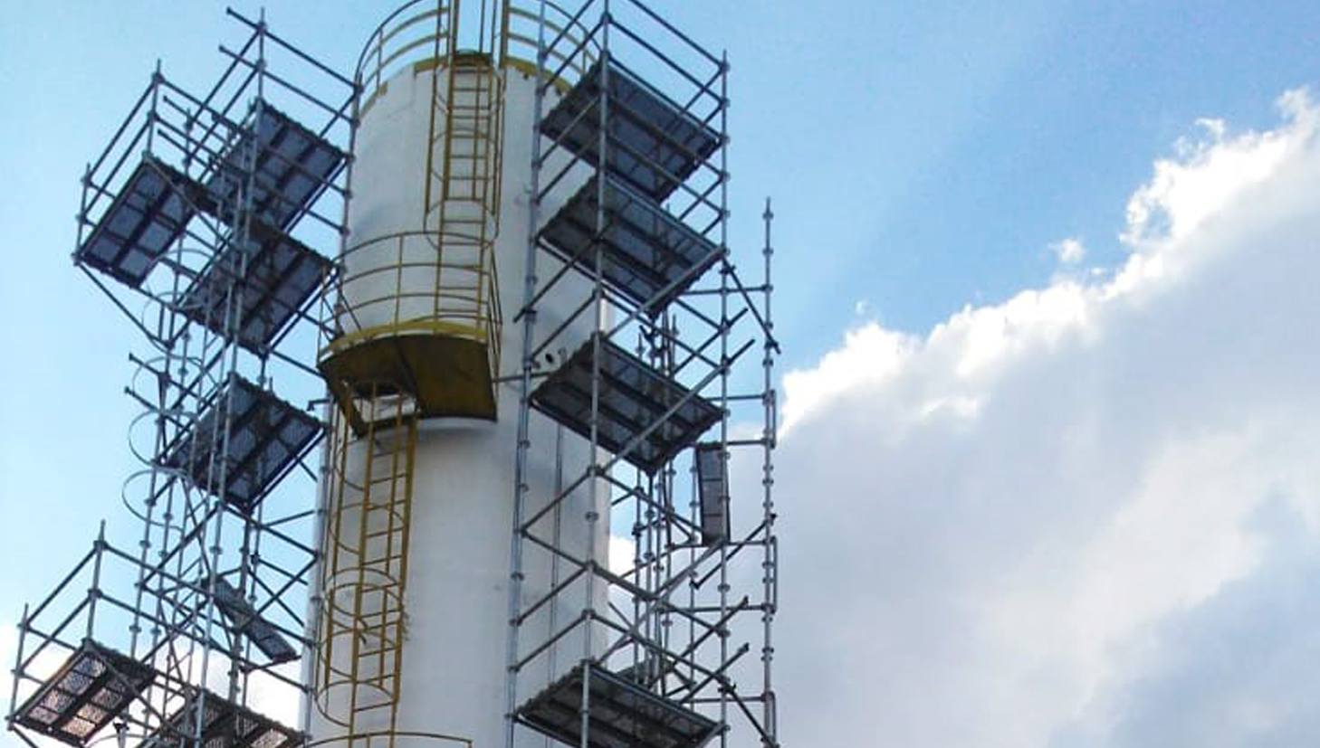 O Andaime multidirecional Urbe foi utilizado em manutenção de tanque industrial.