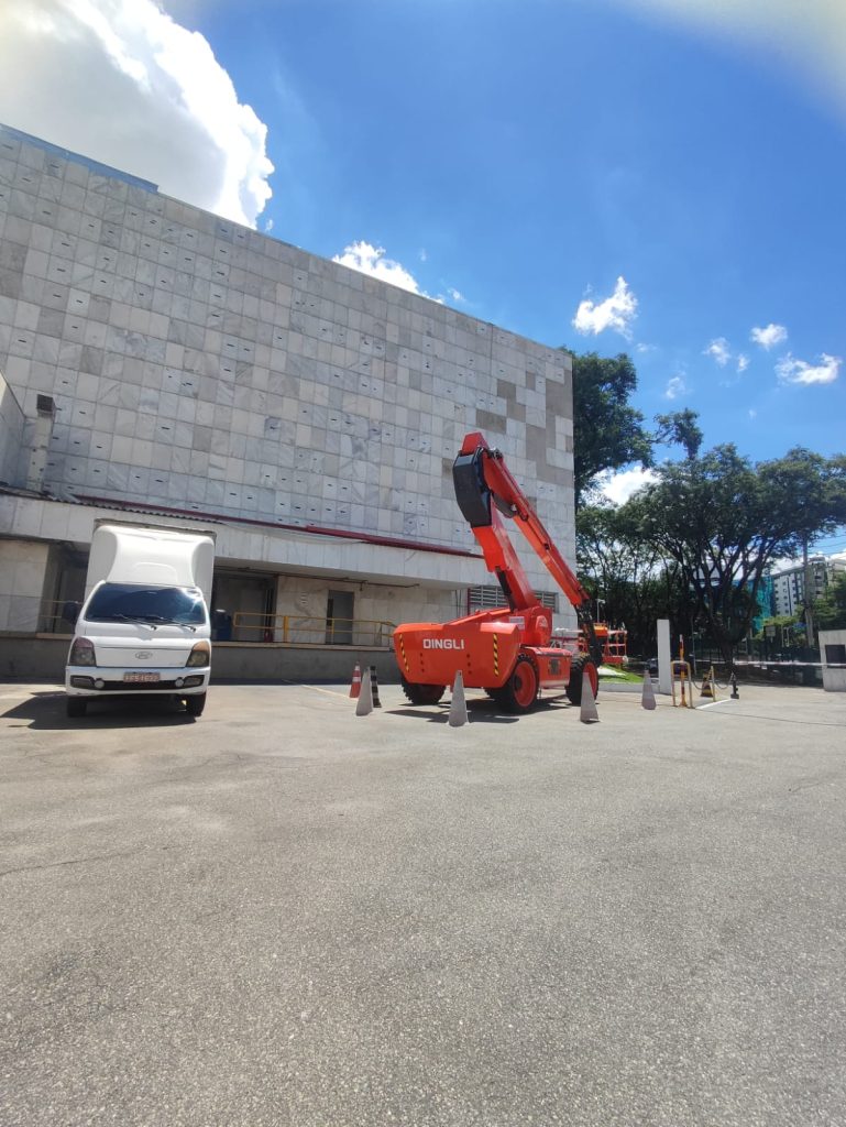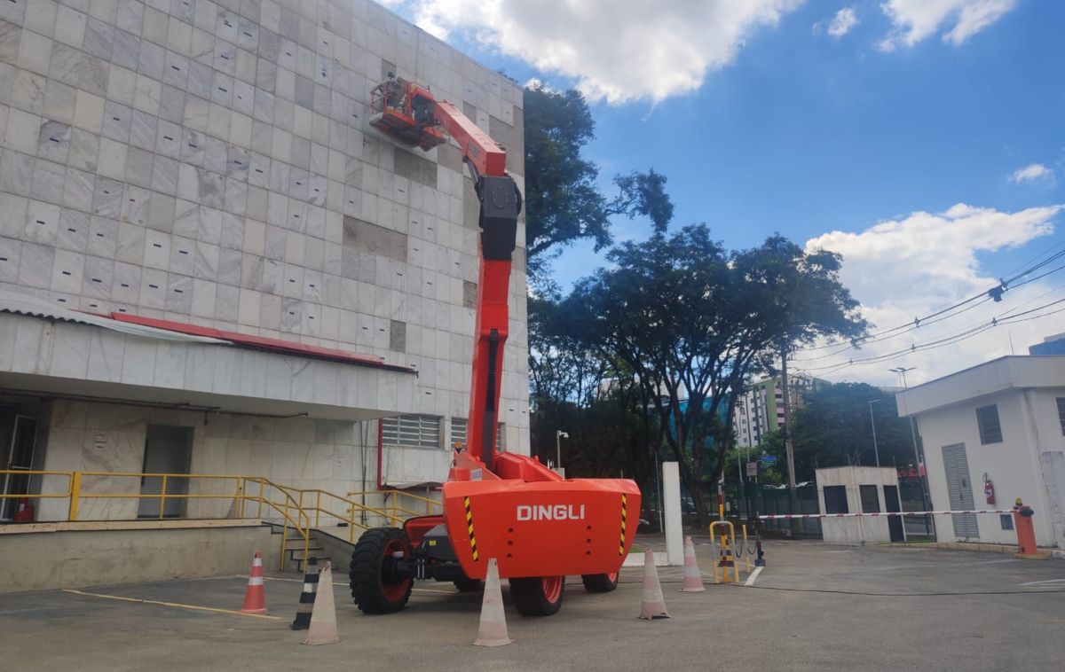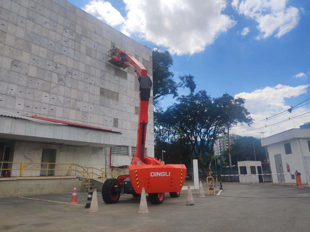 Sua mobilidade e versatilidade tornam o equipamento ideal para intervenções em fachadas, indústrias, galpões, centros logísticos e obras de retrofit, onde o tempo de acesso e a segurança da equipe são fatores decisivos.