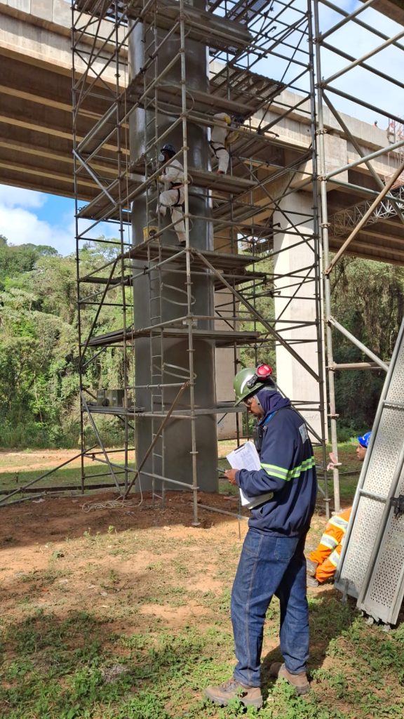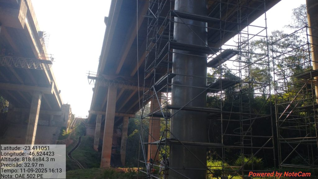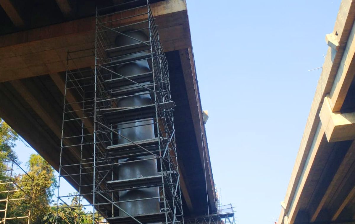 Os equipamentos foram aplicados na execução dos pilares da estrutura viária, oferecendo uma solução técnica adequada para os desafios de acesso e montagem em geometrias complexas.